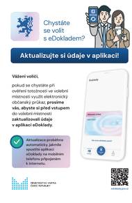 pokud se chystáte při ověření totožnosti ve volební místnosti využít elektronický občanský průkaz, prosíme vás, abyste si před vstupem do volební místnosti zaktualizovali údaje v aplikaci eDoklady