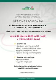 Letos na jaře čeká komunikaci v Opavici a Linhartovech velká oprava, která se dotkne dopravy v našem městě. Zveme obyvatele Opavice a Linhartov na veřejné projednání, které se uskuteční v úterý 31. března od 16:00 v měšťanském domě.
