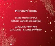 Pošta Peruc informuje o dočasné změně otevírací doby pro veřejnost ve dnech od 20.11. - 1.12. 2025. Upravená otevírací doba: 20.11. - od 8:00 - 11:00 21.11. - od 12:00 - 15:00 24.11. - od 8:00 - 11:00 25.11. - od 12:00 - 15:00 26.11. - od 8:00 - 11:00 27.11. - od 12:00 - 15:00 28.11. - od 12:00 - 15:00 01.12. - od 8:00 - 11:00