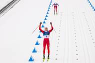 Norský lyžař Johannes Hösflot Klaebo pokračoval po veleúspěšných olympijských hrách, kde získal šest zlatých medailí, ve vítězném tažení ve Falunu. Triumfem ve skiatlonu si připsal už 109. výhru ve Světovém poháru a navázal na sobotní vítězství ve sprintu. Nejlepší z českých reprezentantů Michal Novák obsadil 14. místo. Mezi ženami uspěla v těsném finiši Norka Heidi Wengová, která se z individuálního vítězství v seriálu radovala po více než čtyřech letech. Kateřina Janatová doběhla na 23. místě.