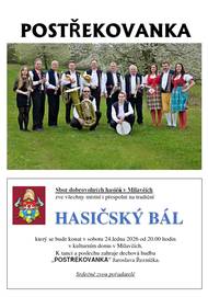 Sbor dobrovolných hasičů v Milavčích srdečně zve všechny místní i přespolní na tradiční hasičský bál. Akce se uskuteční v sobotu 24. ledna 2026 od 20.00 hodin v kulturním domě v Milavčích. K tanci a poslechu zahraje dechová hudba „Postřekovanka“ pod vedením Jaroslava Řezníčka.
