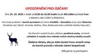Dne 25. října 2025 se bude konat hon v katastru obcí Lštění a Malonice. Akce probíhá od 8.00 do 16.00 hodin v lesních porostech, které jsou součástí této oblasti. Žádáme občany, aby v této době omezili vstup do lesů pro zajištění jejich bezpečnosti.