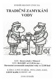 TRADIČNÍ ZAMYKÁNÍ VODY se uskuteční 28. 12. 2025 na Horním rybníce v Milenově od 11:00 hodi