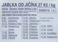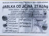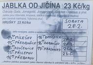 V pátek 2. února v 15 hodin 40 minut se uskuteční v Milešově prodej jablek od Jičína . Cena 23 Kč/kg .