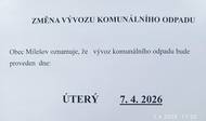 Obec Milešov oznamuje, že vývoz komunálního odpadu bude proveden v úterý 7.4. 2026