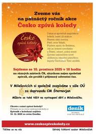 DFS Milešováček vás zve na akci Česko zpívá koledy, která se uskuteční ve středu 10. prosince v 18 hodin. Známé české koledy si společně zazpíváme v sále OÚ v Milešovicích za doprovodu CM Šternovjan. Těšit se můžete také na vystoupení dětí z Milešováčku."