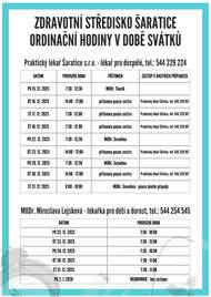 PRAKTICKÝ LÉKAŘ ŠARATICE s.r.o. a MUDr. Miroslava Lejsková informují své pacienty o ordinačních hodinách v době svátků.