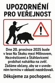 V sobotu dne 20. prosince 2025 bude probíhat naháňka na zvěř.