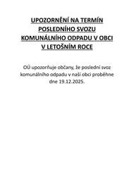 Upozornění na poslední svoz komunálního odpadu v roce 2025.
