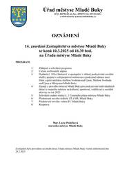 Oznámení o doplnění programu jednání zastupitelstva Doplnění programu jednání zastupitelstva o další bod s názvem „Schválení zadání změny č. 1 Územního plánu městyse Mladé Buky“.