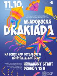 V sobotu 11.10.2025 se koná tradiční Mladobucká Drakiáda. Kde: Na louce nad fotbalovým hřištěm v Mladých Bukách Od: Hromadný start draků v 15:00 hodin V případě deštivého počasí se akce ruší.
