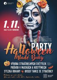 COOLTURA MĚSTYS MLADÉ BUKY A KNIHOVNA MLADÉ BUKY VÁS ZVOU na dětskou HALLOWEEN PARTY sobota 1.11.2025 sraz v 15:30 v knihovně výroba strašidelných světýlek (MALOU SKLENIČKU S SEBOU) průvod v maskách a kostýmech, stezka odvahy, disco tanec se strašidly Odměna za vaši odvahu. Akce pro malé i větší děti v doprovodu rodičů.