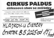 Cirkus PALDUS Vás zve na show se zvířátky ve čtvrtek 8.5.2025 od 17 hodin na louce u čističky. Uvidíte cvičené koně, psy , opice, žongléry akrobaty.. Skákací hrad, jízda na ponících. Občerstvení: cukrová vata, popcorn. Vstupné děti: 150,- dospělí 200,- Kč.