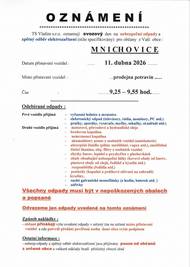 Připomínáme Dnes 11. 4. 2026 od 9:25 do 9:45 hod. proběhne u prodejny potravin sběr nebezpečného odpadu. Více info na uřední desce. Obecní uřad Mnichovice