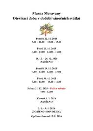 Masna Moravany informuje o otevírací době v době vánočních svátků