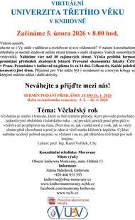 Od 5.2.2026 v 8,00 hod. začíná v knihovně virtuální Unverzita třetího věku na téma "Včelařský rok".