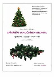 Zveme všechny občany na zpívání u vánočního stromku v pátek 19.prosince 2025.