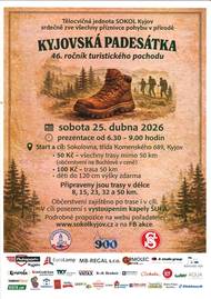 Tělocvičná jednota SOKOL Kyjov srdečně zve všechny příznivce pohybu v přírodě na Kyjovskou padesátku turistického pochodu v sobotu 25.dubna 2026.