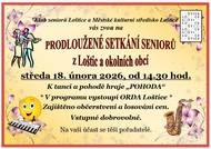 Klub seniorů a Městské kulturní středisko Loštice zve na PRODLOUŽENÉ SETKÁNÍ SENIORŮ z Loštic a okolních obcí, které se bude konat ve středu 18. února 2026 od 14.30 hodin. K tanci a pohodě hraje skupina POHODA z Uničova, v programu vystoupí Taneční klub ORDA Loštice. Zajištěno občerstvení