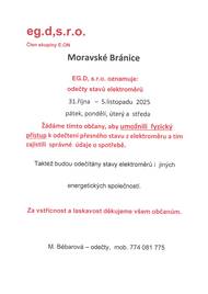 Obecní úřad Moravské Bránice bude v pondělí 27.10.2025 uzavřen. Ve středu 29.10.2025 bude obecní úřad otevřen pouze do 17,30 hodin.