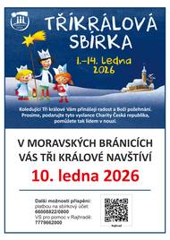 Koledníci Tříkrálové sbírky Vás navštíví v naší obci v sobotu 10. ledna 2026.