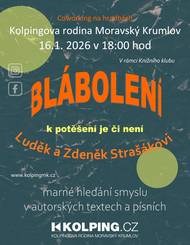 📚🎶 Blábolení – k potěšení je či není? Kolpingova rodina Moravský Krumlov zve všechny občany na večer plný autorských textů, písní, humoru i zamyšlení. Přijďte si odpočinout, pobavit se a možná i trochu zapřemýšlet nad „marným hledáním smyslu“ v textech a písních. 🗓 16. 1. 2026 🕕 18.00 hod. 📍 Coworking na hradbách, Moravský Krumlov 🎭 V rámci Knižního klubu Kolpingovy rodiny Těšit se můžete na originální dvojici Luděk a Zdeněk Strašákovi a jejich osobitý pohled na svět.