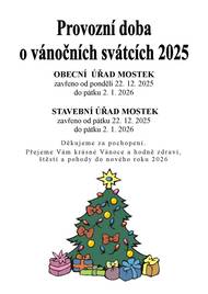 Vážení občané, rádi bychom vás informovali o dočasném uzavření provozovny České pošty v Mostku z provozních důvodů v některé dny do konce roku 2025. Děkujeme za pochopení.