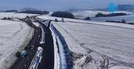 Záběry z dronu zachycující výstavbu Palačovské spojky, která se dotýká jihozápadní hranice Moravskoslezského kraje. Záběry byly pořízeny v listopadu 2025.