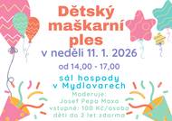 🥳Spolek Mydlovaran zve všechny děti na maškarní ples v neděli 11. 1. 2026 od 14,00-17,00 do sálu v hospodě v Mydlovarech. Moderuje Pepa Maxa.