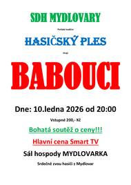SDH Mydlovary pořádají tradičný Hasičský ples v sobotu 10. ledna 2026 od 20,00. Vstupné 200 Kč. Bohatá tombola💻⌨🧻🎂🍾