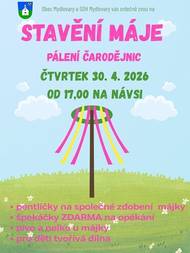 Obec Mydlovary a SDH Mydlovary zvou na akci Stavění máje a pálení čarodějnic ve čtvrtek 30. 4. 2026 od 17,00 na návsi. Pivo bude připraveno u májky, špekáčky k opékání zdarma a pro děti pentličky na májku a tvořivá dílna. Všichni jsou srdečně zváni🌸