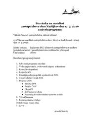 Zasedání zastupitelstva obce Nadějkov se uskuteční v úterý 17. března 2026 od 18.00 hodin. Místo konání: knihovna, Polyfunkční komunitní centrum Nadějkov