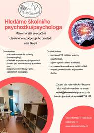 Naše škola hledá nové pedagogy. Nabízíme flexibilní pracovní úvazek, prostor pro vlastní nápady a profesní růst, a podporu od vedení školy a týmu speciálních pedagogů. Bližší informace podáme na e-mailu: reditel@skolanehvizdy.cz nebo telefonicky 603 726 127.