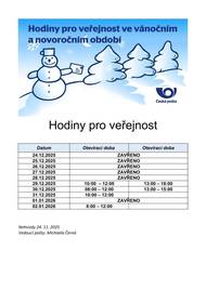 22. 12. 2025 úřední den 8-12 a 13-17 hod. 23. 12. 2025 zavřeno 29. - 31. 12. 2025 zavřeno 2. 1. 2026 zavřeno