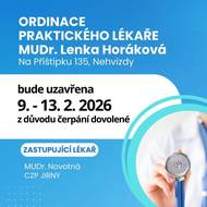 Ordinace MUDr. Lenky Horákové uzavřena od 9. do 13. 2. 2026