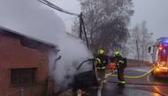 Auto narazilo v Černavě u Nejdku do domu, po nárazu začalo hořet
