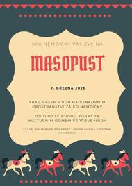 Pozor, pozor! Již tuto sobotu nás čeká oblíbený maškarní ples pro dospělé! 🎭💃🕺 Kdo ještě nemá místenku, má nejvyšší čas – volná místa rychle mizí! Poslední možnost zakoupení místenek je dnes do 14:30 hod. na OÚ v Němčičkách, poté už je to o tom, kdo dřív přijde 😊 Neváhejte, oprašte masky a přijďte si užít večer plný zábavy, tance a smíchu. Těšíme se na Vás!