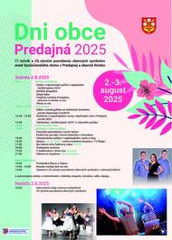 Starostka a Obecné zastupiteľstvo obce Predajná vás srdečne pozývajú na Dni obce Predajná, ktoré sa budú konať 02.-03. augusta 2025.