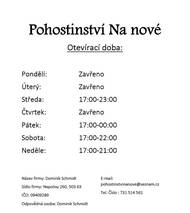 Otevírací doba pohostinství Na Nové platná od 7.11.2025.