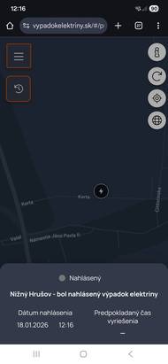 Výpadok elektriny - jednej fazy na uliciach KERTA, BIKAČ, NÁMESTIE JÁNA PAVLA a HLAVNÁ je nahlásený na VSD. Informácie k oprave môžete priebežne sledovať na www.vypadokelektriny.sk