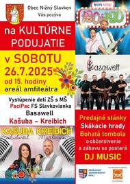 Obec Nižný Slavkov vás srdečne pozýva na kultúrne vystúpenie detí zo ZŠ s MŠ a folklórneho súboru Slavkovianka. Tešiť sa môžete aj na vystúpenie Basawell a ďalšie prekvapenia v areáli amfiteátra.