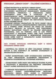 Prijímatelia dotáciie "Obnov dom" pozor na falošné kontroly. Oficiálna kontrola je vopred ohlásená, preukáže sa, nikdy nevyberá peniaze v hotovosti