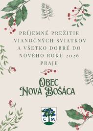 Príjemné prežitie Vianočných sviatkov a všetko dobré do Nového roku 2026 praje Obec Nová Bošáca.