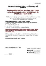 ZÁPIS DO MŠ 2026/2027