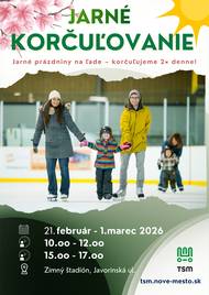 Před 19 dnyVEREJNÉ KORČUĽOVANIE POČAS JARNÝCH PRÁZDNINPozývame všetky deti, rodiny aj širokú verejnosť na verejné korčuľovanie na zimnom štadióne. Denne v dvoch časoch: 10.00 – 12.00 hod. 15.00 – 17.00 hod. Príďte si užiť pohyb, zábavu a pravú zimnú atmosféru. Tešíme sa na vás! Rozpis - https://www.tsm.nove-mesto.sk/rozpis/