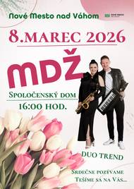 Před 19 dnyPozvánka na oslavu MDŽSrdečne Vás pozývame na príjemné popoludnie venované všetkým ženám pri príležitosti Medzinárodného dňa žien, ktoré sa uskutoční v nedeľu 8. marca v Spoločenskom dome. O skvelú náladu a hudobný program sa postará Duo Trend, ktoré vám od 16.00 hod. spríjemní sviatočné chvíle obľúbenými melódiami. Príďte si oddýchnuť, zabaviť sa a stráviť čas v milej spoločnosti priateľov a známych. MDŽ je krásnou príležitosťou poďakovať sa ženám za ich láskavosť, silu a každodennú starostlivosť. Veríme, že tento deň naplníme úsmevom, hudbou a príjemnou atmosférou. Tešíme sa na Vás!