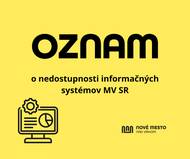 Před 4 dnyOddelenie pre sociálne veci a správu bytov dočasne bez osobných konzultáciíMesto Nové Mesto nad Váhom oznamuje občanom, že od 10. marca 2026 dochádza k dočasnému obmedzeniu poskytovania osobných konzultácií na Oddelení pre sociálne veci a správu bytov Mestského úradu v Novom Meste nad Váhom, a to do odvolania. Dôvodom je dočasná pracovná neschopnosť zamestnankýň referátu. Vzhľadom na odborný charakter agendy nie je možné zabezpečiť ich zastupovanie. Žiadosti a podania patriace do pôsobnosti referátu je možné aj naďalej podávať písomnou formou prostredníctvom podateľne Klientskeho centra Mestského úradu v Novom Meste nad Váhom, a to v rámci úradných hodín mestského úradu: Úradné hodiny Mestského úradu Nové Mesto nad Váhom: pondelok: 7.30 – 15.30 utorok: 7.30 – 15.30 streda: 7.30 – 17.00 štvrtok: administratívny deň piatok: 7.30 – 13.00 Za pochopenie ďakujeme. Oddelenie pre sociálne veci a správu bytov dočasne bez osobných konzultácií | www.nove-mesto.sk