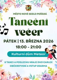 Město Nové Sedlo pořádá a zve na další ročník reprezentačního plesu města, který se uskuteční 13.2.2026 od 20:00 hod. v kulturním domě Meteor. Doprovodný program a občerstvení zajištěno. Více informací na plakátu v příspěvku.