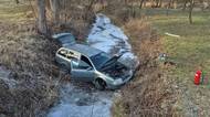 Nehoda v Novém Hrozenkově, auto skončilo v korytě potoka