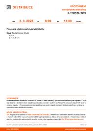 Plánované přerušení dodávky elektřiny dne 3. března 2026 od 8:00 do 13:00 v Obci Nový Kostel - č.p. 20. Dále č. ev. 1, 3, 5, 6.